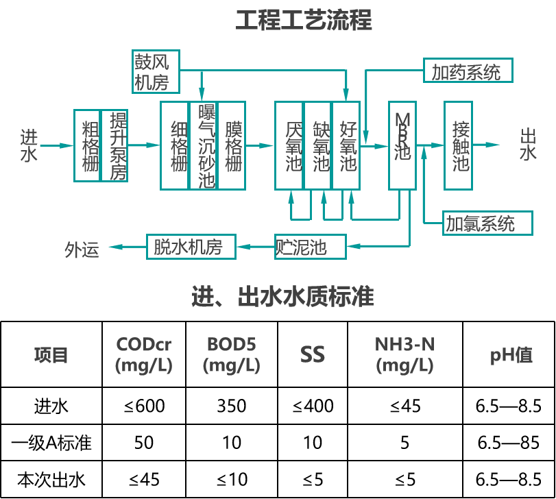 丁墙河每天3000立方污水处理设备,主要污染物为氨氮、总磷、化学需氧量,采用MBR膜处理技术